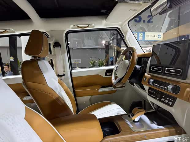 内饰方面,212T01尽可能保留了物理按键,同时也加入了大尺寸的悬浮式中控屏,还配备了电子挡杆和电子手刹。整体保持原汁原味的硬派风格,同时也能保证一定的舒适性。60周年纪念版相比普通版则采用了双拼色布局,座椅头枕上还待带有60周年专属的缝线。